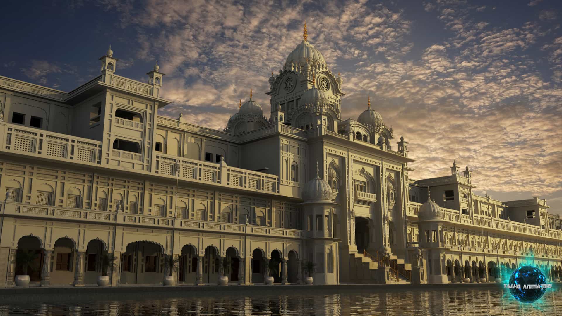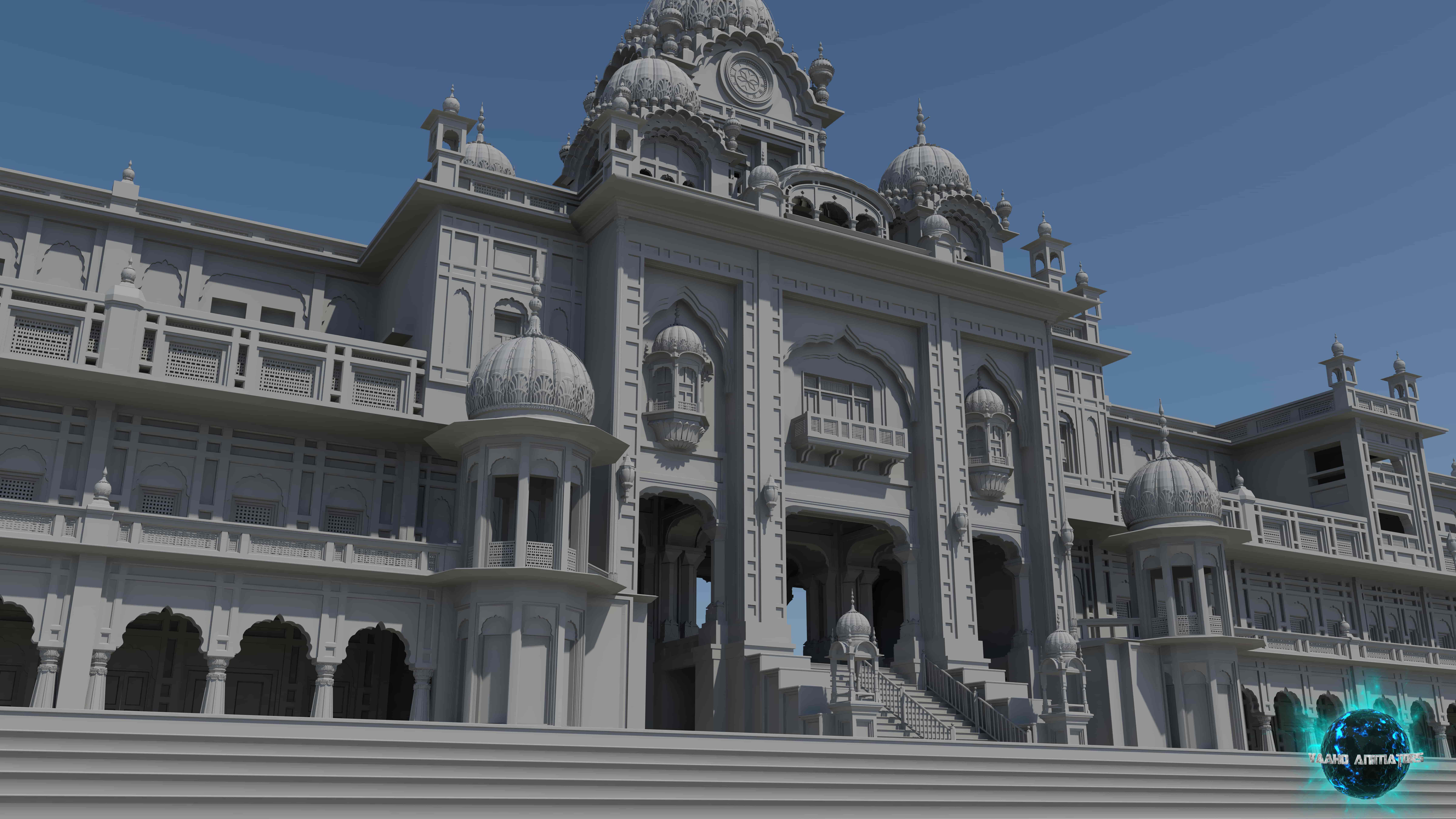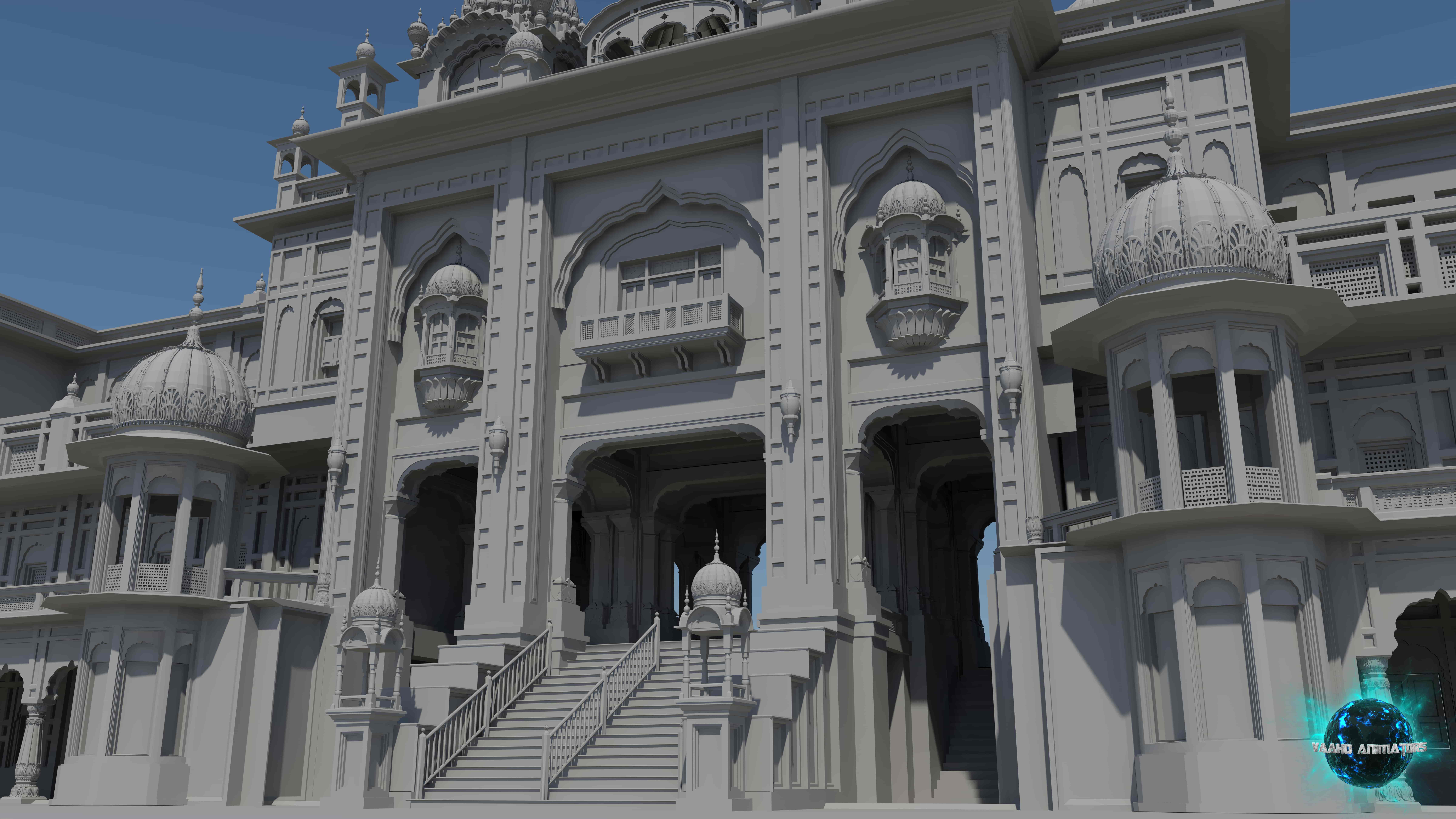 Therefore, no interiors have been designed. Only the exterior of The Golden Temple has been rendered in 3D.