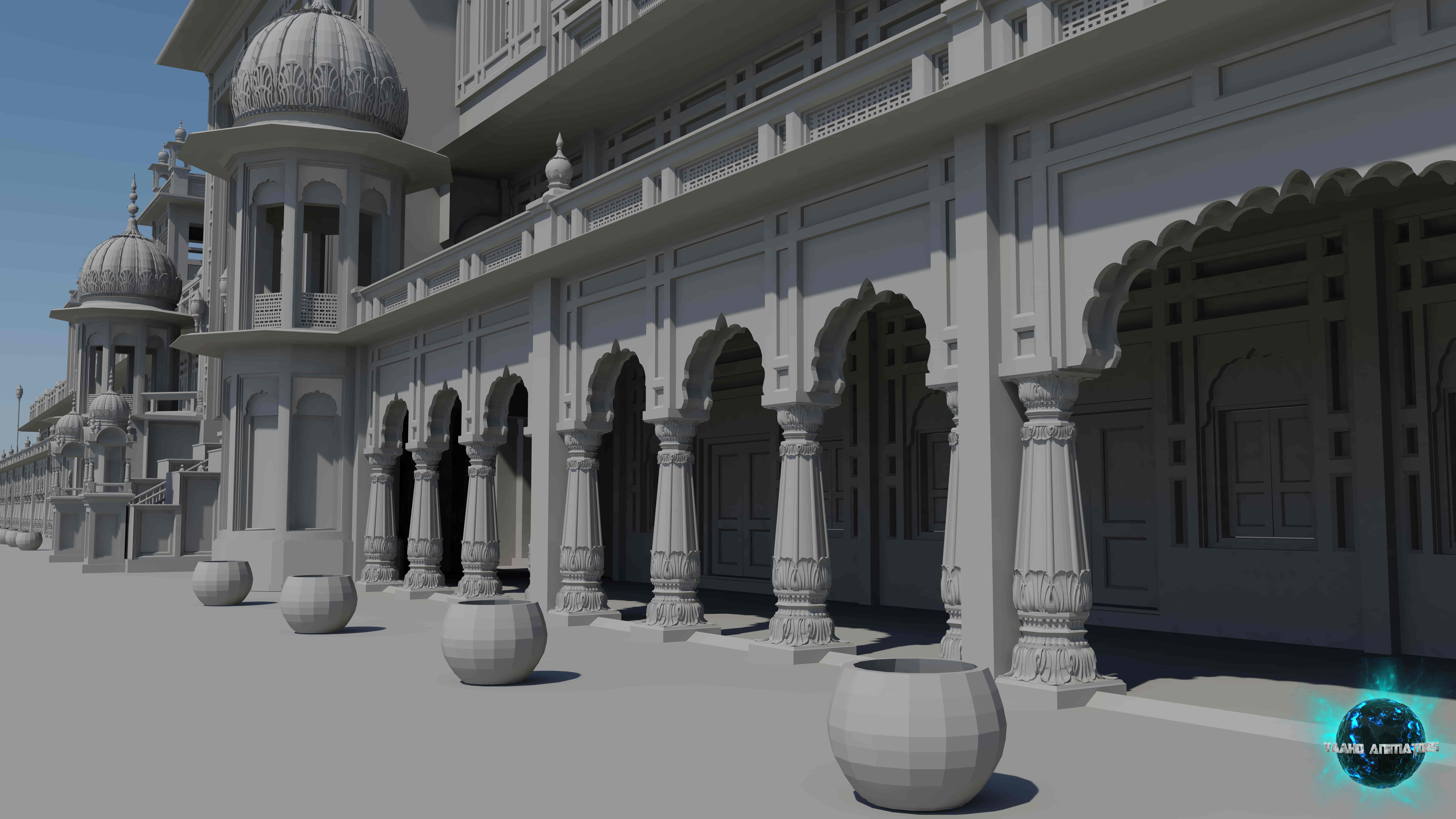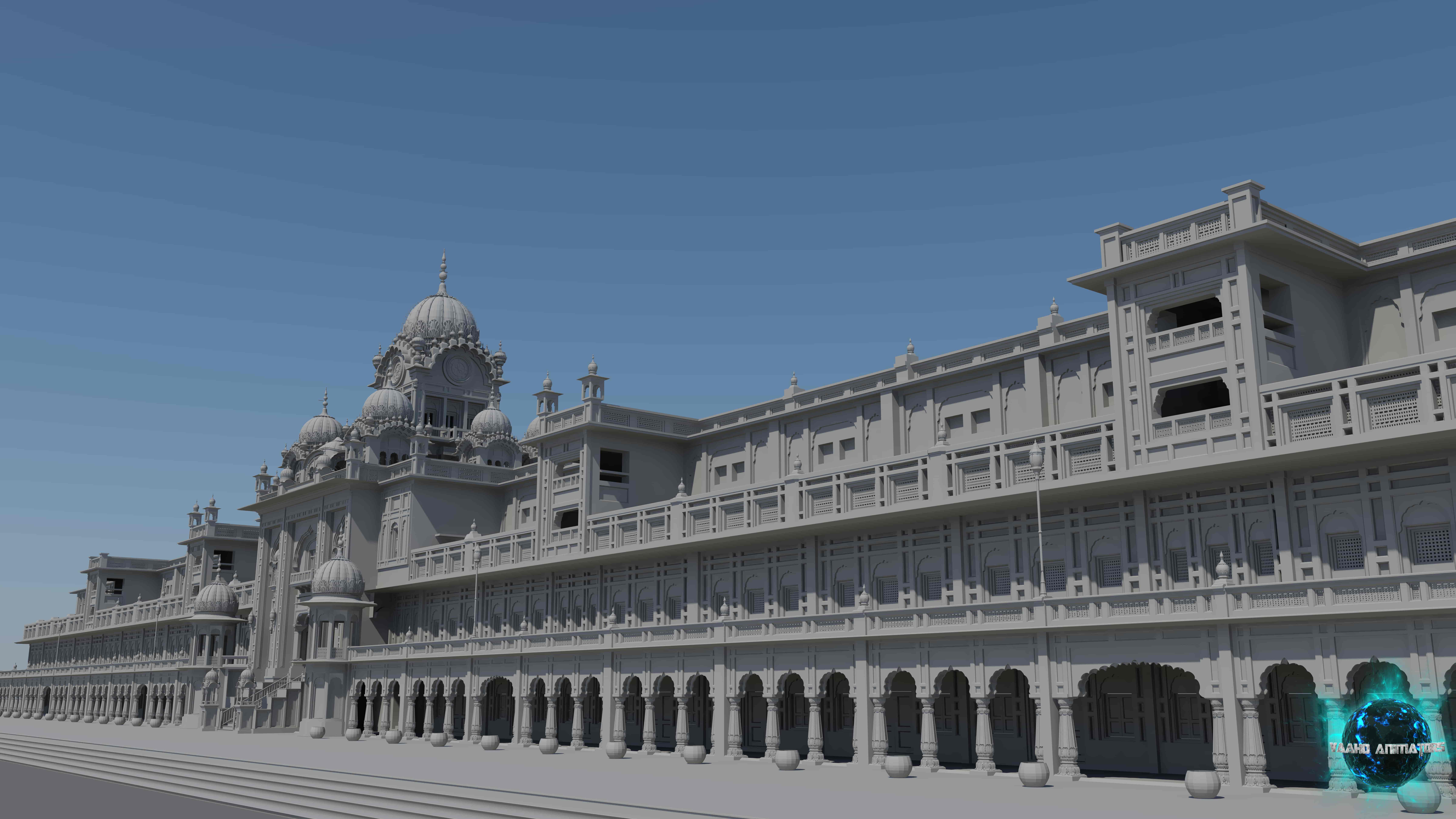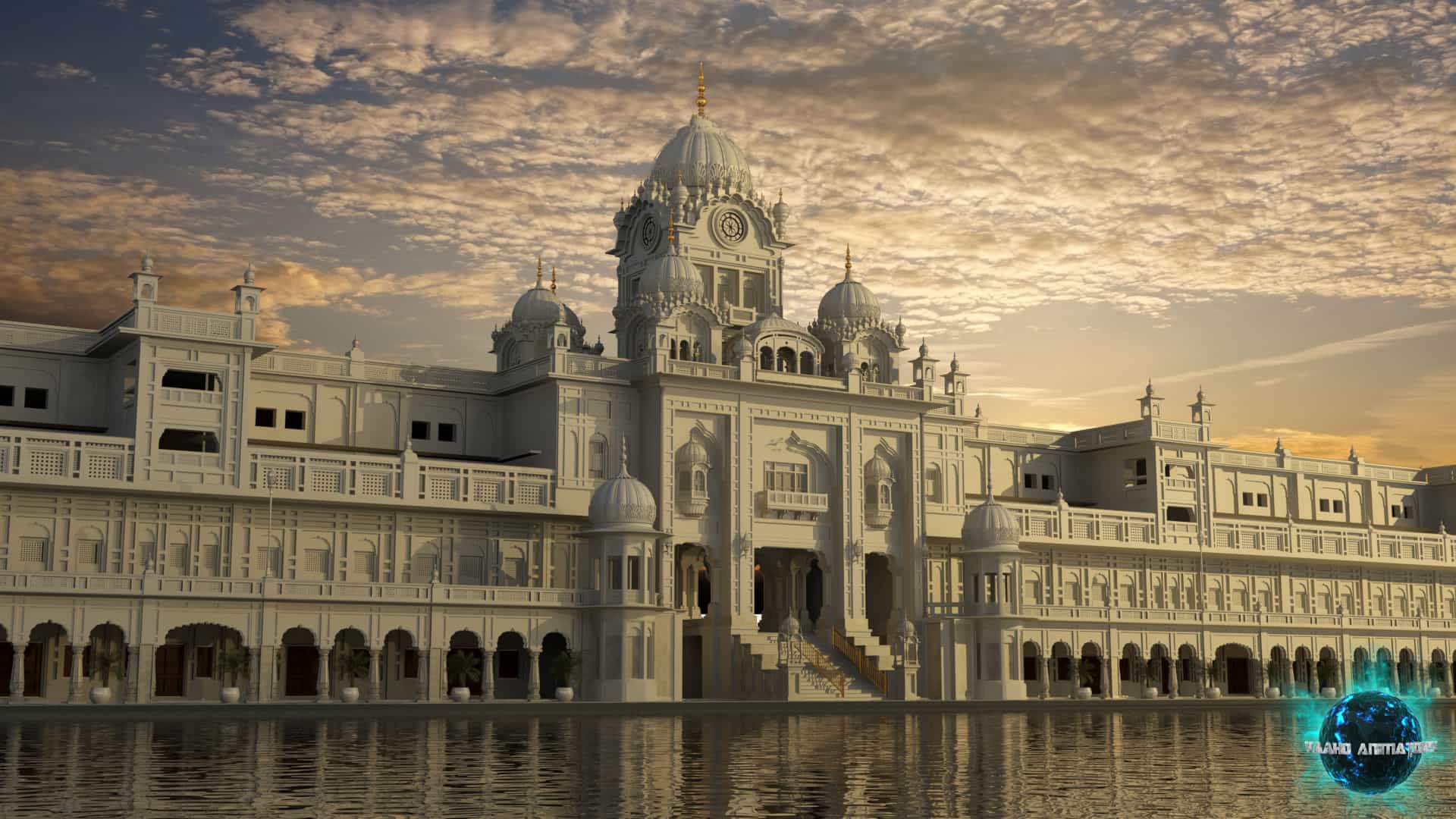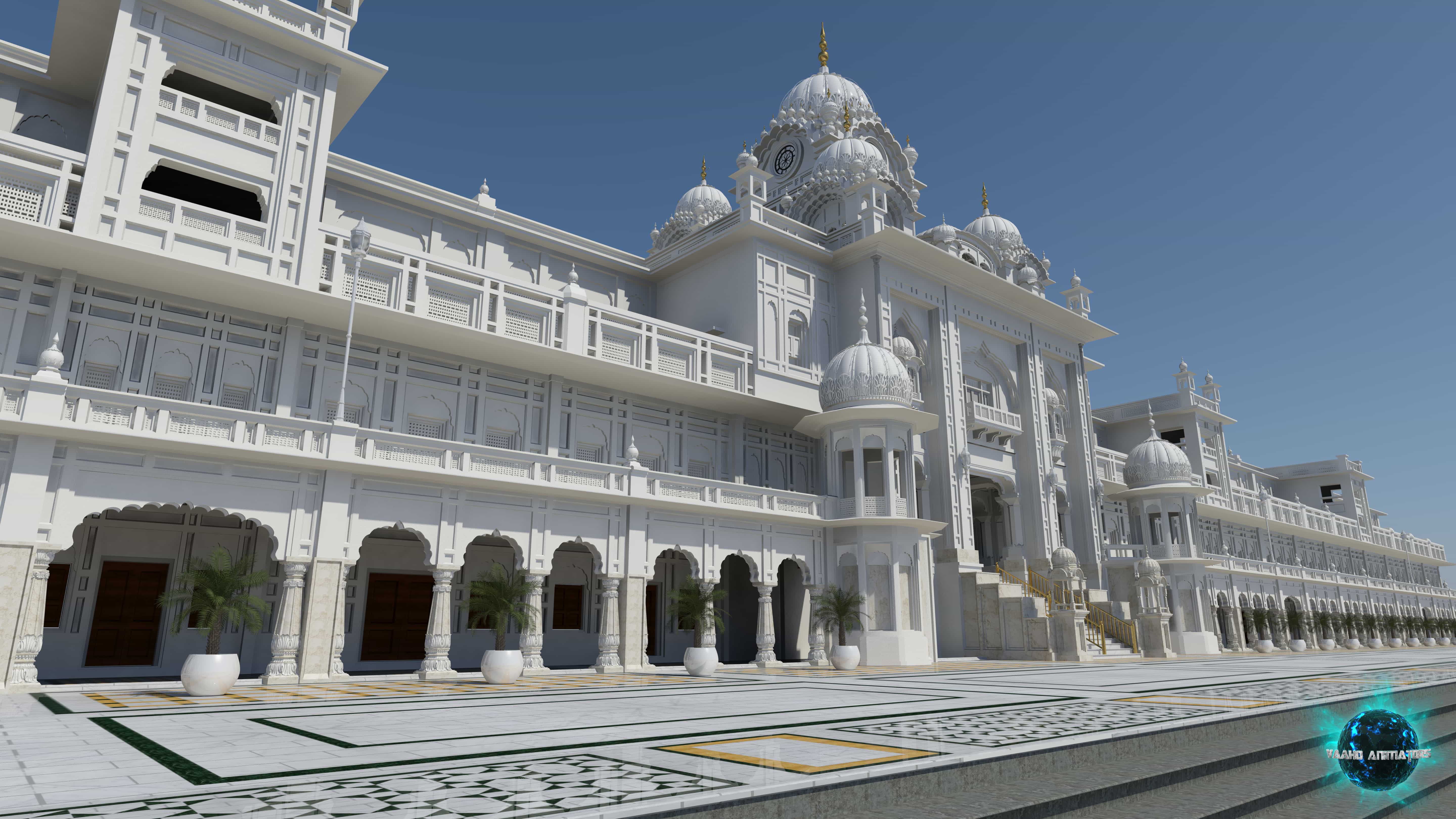 Therefore, no interiors have been designed. Only the exterior of The Golden Temple has been rendered in 3D.